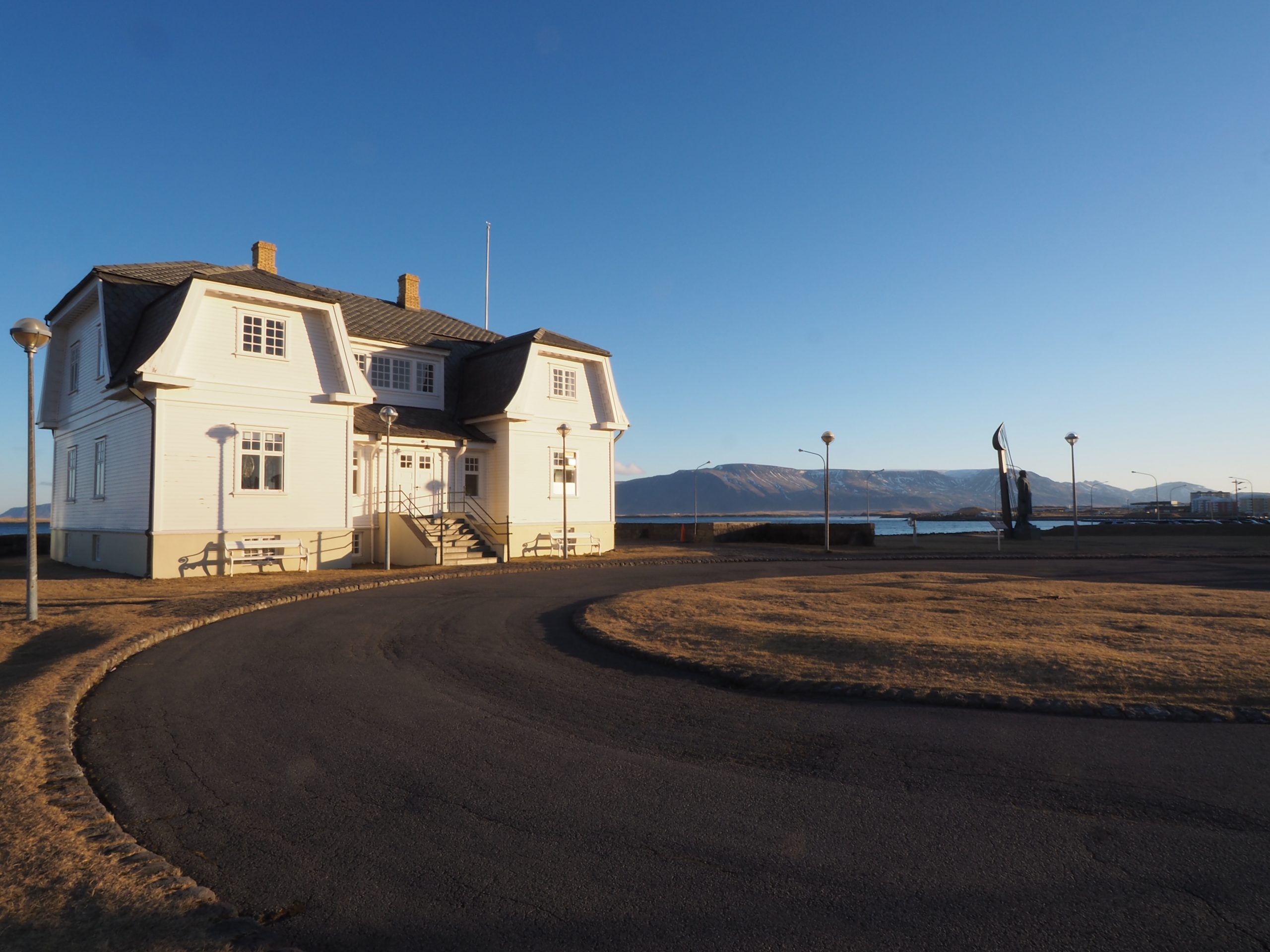 Continuando con el paseo por la orilla llegamos al Faro y a la Casa Höfði, uno de los edificios más bellos e históricamente significativos de la ciudad. Construida en 1909, aquí tuvo lugar la Cumbre de Reykjavík, en octubre de 1986, en la que se reunieron el presidente de EEUU, Ronald Reagan y el Secretario General del Partido Comunista de la Unión Soviética, Mijail Gorbachov, un acontecimiento histórico que marcó el final de la Guerra Fría. También visitaron la Casa Höfði personajes como la Reina de Inglaterra, Winston Churchilll o Marlene Dietrich. Desafortunadamente la casa no se puede visitar por dentro pero el entorno merece un paseo hasta ahí. La escultura que hay enfrente representa al poeta islandés Einar Benediktsson quien vivió en la casa durante unos años.