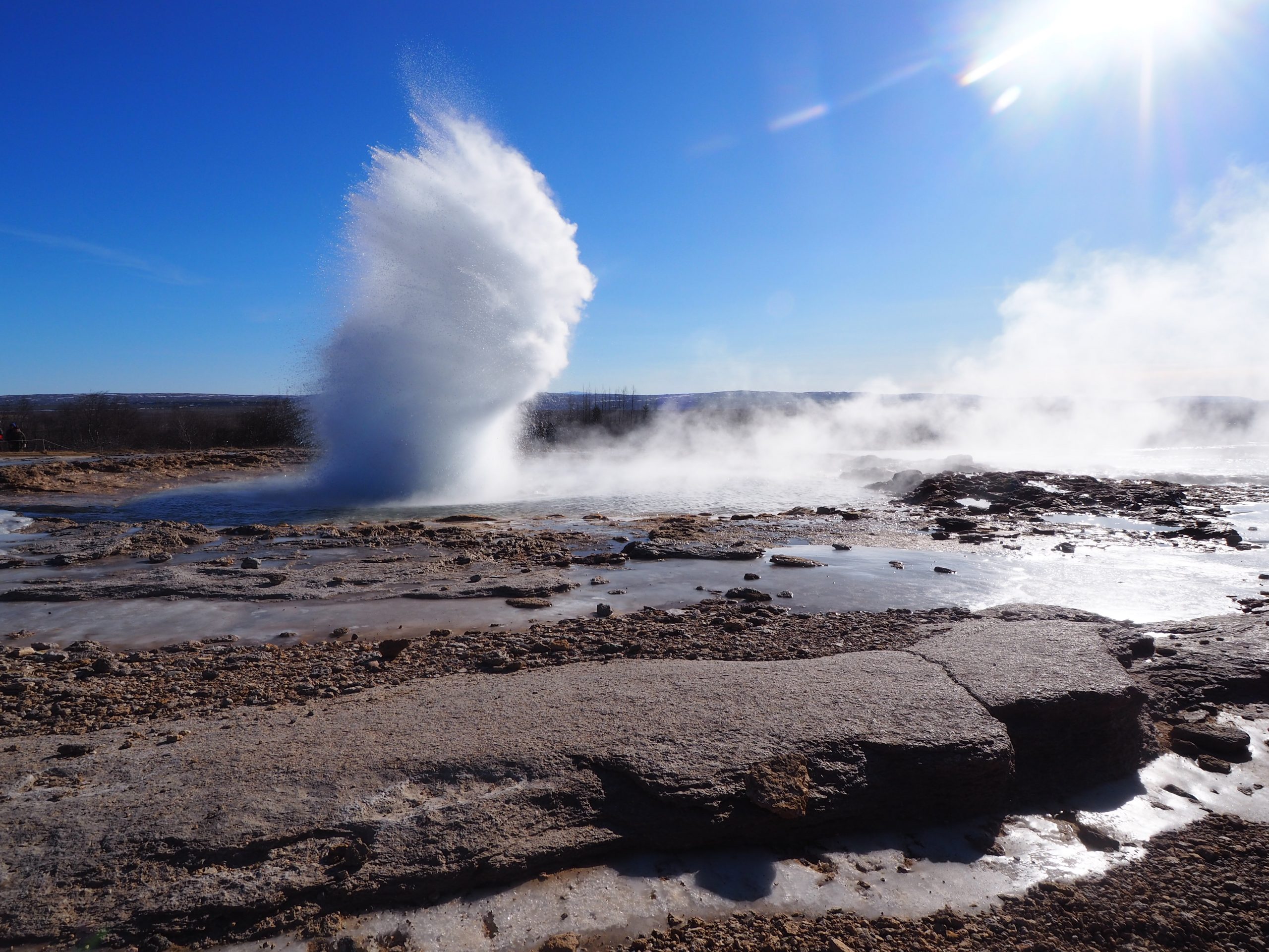 El área geotérmica de Geysir es la segunda parada del itinerario y es otro espectáculo de Madre Naturaleza. Ubicada dentro del Valle de Haukadalur, ya a lo largo del camino son visibles las fumarolas humeantes que caracterizan la zona en la que existen dos géiseres que han hecho famosa a esta área. El primero de ellos es el que ha dado el nombre al resto: el Gran Geysir. Éste es el primer géiser documentado en la literatura europea y su nombre proviene de un verbo nórdico antiguo que significa ‘entrar en erupción’. Su vecino, el Geysir Strokkur, entra en erupción cada diez minutos, lanzando agua al aire y alcanzando los 20-40 m.