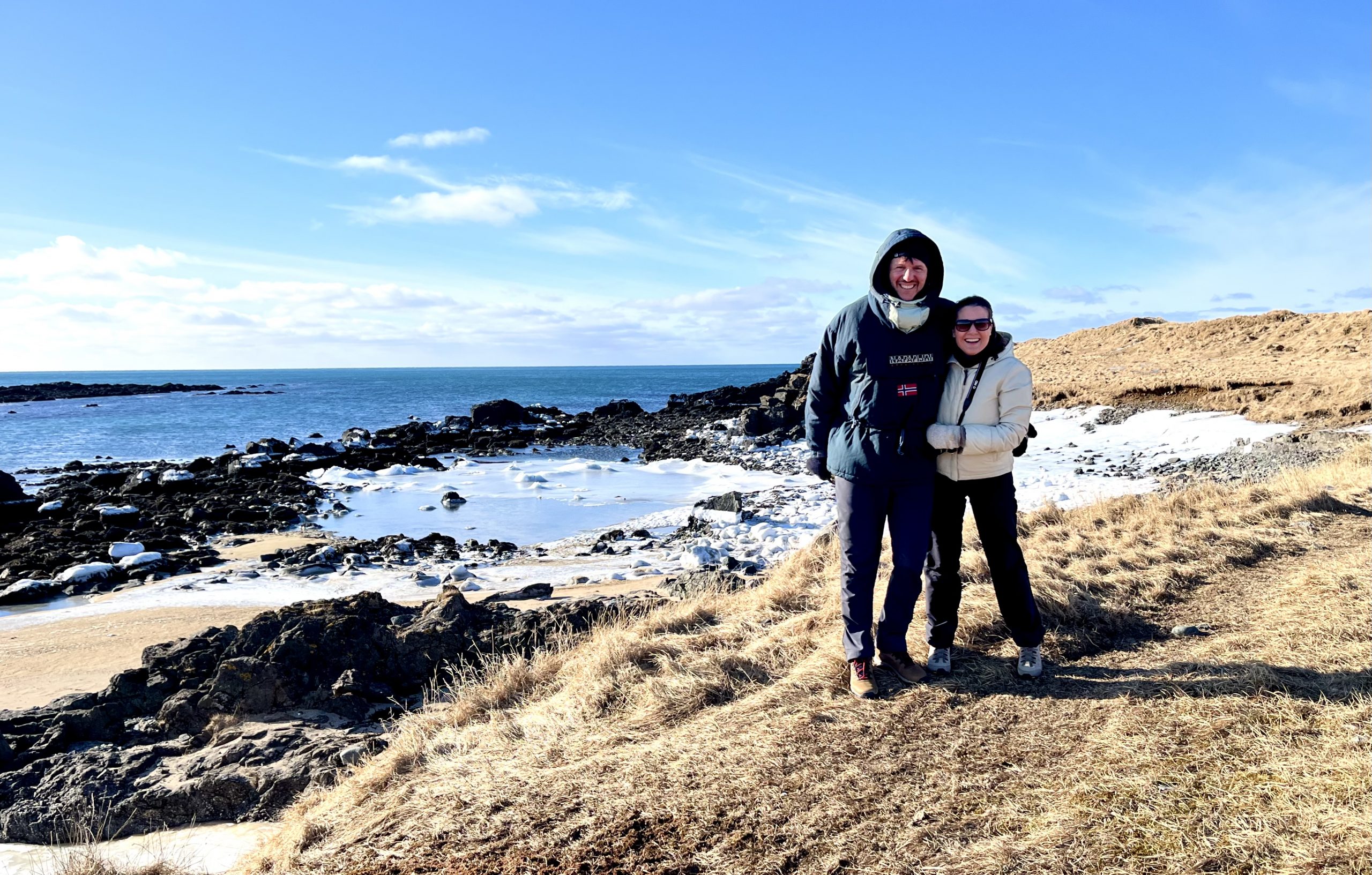 - Maleta: lo primero y esencial, aunque parezca obvio, es que te lleves ropa térmica para garantizar no morirte del frío, sobre todo si quieres viajar a Islandia en invierno. Nosotros hemos utilizado las camisetas y chalecos térmicos que usamos para ir en bici y han funcionado de maravilla. Pantalón termico también fundamental, chubasquero y zapatos de trekking impermeables y anti deslizamiento, hay muchas zonas aún con hielo en marzo y es fácil resbalar. Obviamente imprescindibles guantes y gorro, ten en cuenta que Islandia es una isla donde hay viento muy a menudo, lo que genera una sensación térmica bastante más baja y se puede llegar a pasar muuucho frio así que es fundamental que la maleta esté bien pensada. También recomiendo llevar una botella isotérmica para poderla llenar con alguna bebida caliente, te aliviará del frío cuando estes en rutas de naturaleza!